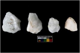 | Description / विवरण | Cores, with several broad fluted marks from almost all the sides indicating the detached blades from it. |