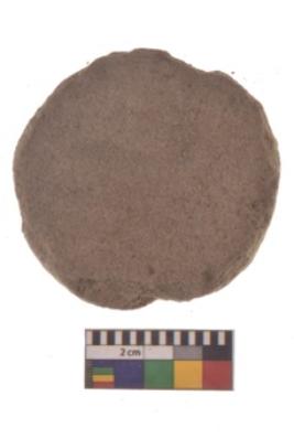 | Description / विवरण | Specimen of a roughly rounded rubber stone with oval section.It is heaving flat base. |