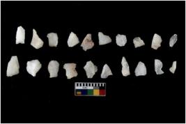 | Description / विवरण | There are n 20 flakes tool; there are multidirectional irregular scar pattern on them, made of short flakes and few have tapering edges. |