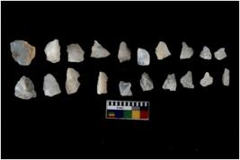 | Description / विवरण | There are n 20 flakes tool; there are multidirectional irregular scar pattern on them, made of short flakes and few have tapering edges. |