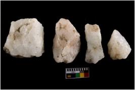 | Description / विवरण | There are n 4 flake cores. All of them are fully fluted flake cores without any trace of crested ridge flakes. They are tapering at one end and some have blunted edges. |