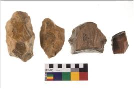 | Description / विवरण | Specimen of a cores with pebbly cortex on one side and irregular thin edge on the other. |