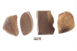 | Description / विवरण | There are n 4 utilized flakes. There are multi directional irregular scar pattern on both dorsal and ventral face of the flakes. three are tapering at one end and one has sharp edges. |