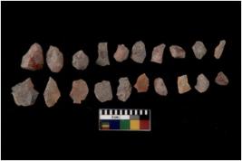 | Description / विवरण | Specimen of flakes Chips with prominent flaking marks. It made up of a short flakes with sides trimmed. |