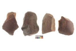| Description / विवरण | There are n 4 utilized flakes. There are multi directional irregular scar pattern on both dorsal and ventral face of the flakes. two are tapering at one end and two have blunted edges. |