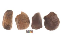 | Description / विवरण | There are n 4 utilized flakes. There are multi directional irregular scar pattern on both dorsal and ventral face of the flakes. two are blunted at one end and two are sharp edges. |