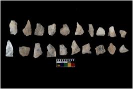| Description / विवरण | There are n 20 flakes tool; there are multidirectional irregular scar pattern on them, made of short flakes and few have tapering edges. |