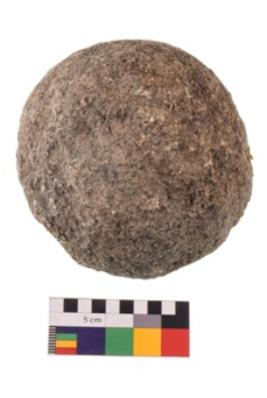| Description / विवरण | Specimen of a roughly round shaped hammerstone with battered periphery along with the circumference. It is greyish in colour. |