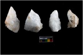 | Description / विवरण | Cores, with several broad fluted marks from almost all the sides indicating the detached blades from it. |