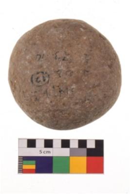 | Description / विवरण | Specimen of a round shaped hammerstone with smooth surface. It is creamish in colour and has flat base. |
