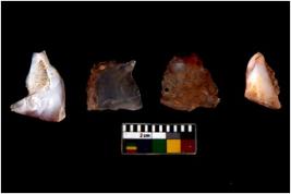 | Description / विवरण | Specimen of flake tools with prominent flaking marks. They are made up of a short flakes with sides trimmed. |