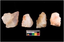 | Description / विवरण | Specimen of a cores with several broad fluted marks. Some of them are tapering at one end. |