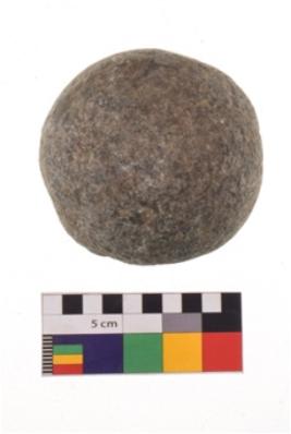 | Description / विवरण | Specimen of a round shaped hammerstone with smooth surface. It is blackish in colour. |