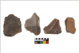 | Description / विवरण | There are n 4 flakes tool; there ar sub rectangular flake with wavy thick distal end and broken functional top. It reined pebbly cortex on one side and irregular thin edge on the other. |