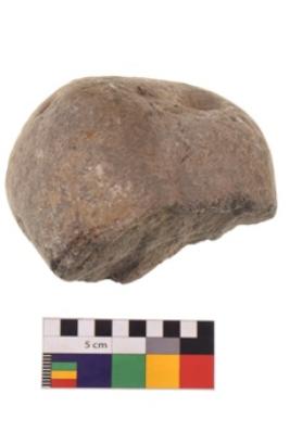 | Description / विवरण | Specimen of an uneven shaped hammerstone with smooth surface. It is brownish in colour. |