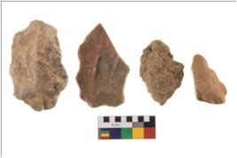| Description / विवरण | There are n 4 flakes tool; there ar sub rectangular flake with wavy thick distal end and broken functional top. It reined pebbly cortex on one side and irregular thin edge. |