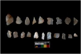 | Description / विवरण | There are n 20 flakes tool; there are multidirectional irregular scar pattern on them, made of short flakes and few have tapering edges. |