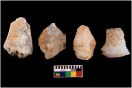 | Description / विवरण | Specimen of a cores with several broad fluted marks. Some of them are tapering at one end. |