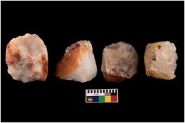 | Description / विवरण | Specimen of a cores with several broad fluted marks. Some of them are tapering at one end. |
