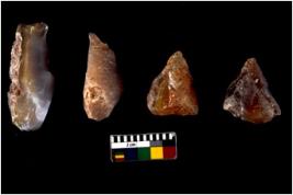 | Description / विवरण | Worked utilised flakes with sharp edges.Many a times they are tapering and pointed at one end. |