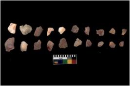 | Description / विवरण | Specimen of flakes Chips with prominent flaking marks. It made up of a short flakes with sides trimmed. |
