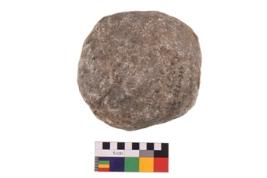 | Description / विवरण | Specimen of a roughly round shaped hammerstone with smooth surface. It is blackish in colour and has flat base. |