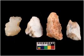 | Description / विवरण | Specimen of a cores with several broad fluted marks. Some of them are tapering at one end. |
