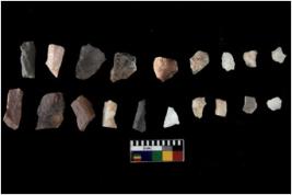 | Description / विवरण | There are n 20 flakes tool; there are multidirectional irregular scar pattern on them, made of short flakes and few have tapering edges. |