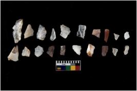 | Description / विवरण | Specimen of flakes with prominent flaking marks. It made up of a short flakes with sides trimmed. |