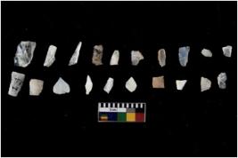 | Description / विवरण | There are n 20 flakes tool; there are multidirectional irregular scar pattern on them, made of short flakes and few have tapering edges. |