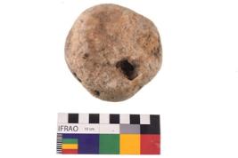 | Description / विवरण | Specimen of an uneven shaped hammerstone with smooth surface. It is creamish in colour. |
