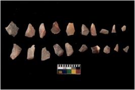 | Description / विवरण | Specimen of flakes Chips with prominent flaking marks. It made up of a short flakes with sides trimmed. |