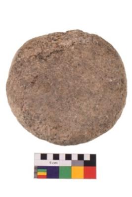 | Description / विवरण | Specimen of a smasher with round and smooth surface. It is brownish in colour and has flat base. |