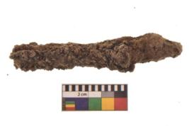 | Description / विवरण | Fragment of long nail with bilunt pointed functional bottom end and round slightly projected top. |
