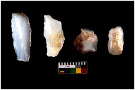 | Description / विवरण | Specimen of flake tools with prominent flaking marks. They are made up of a short flakes with sides trimmed. |
