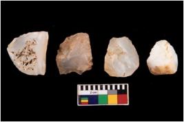 | Description / विवरण | Specimen of a cores with several broad fluted marks. Some of them are tapering at one end. |