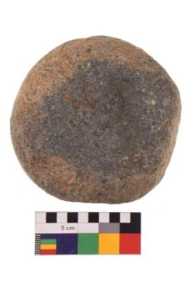 | Description / विवरण | Specimen of a roughly round shaped smasher with smooth surface. It is blackish in colour and has flat base. |