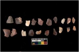 | Description / विवरण | Specimen of flakes Chips with prominent flaking marks. It made up of a short flakes with sides trimmed. |
