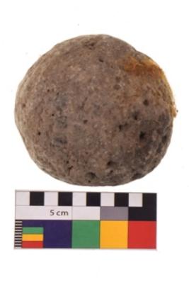 | Description / विवरण | Specimen of a round shaped sling ball with rough surface. It is brownish in colour. |