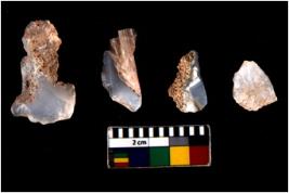 | Description / विवरण | There are n 4 utilized flake cores. There are multidirectional irregular scar pattern on both dorsal and ventral face of the flake cores. |