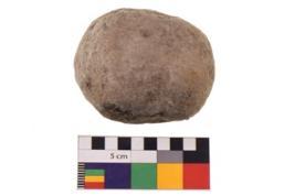 | Description / विवरण | Specimen of an uneven shaped sling ball with rough surface. It is brownish in colour. |