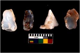 | Description / विवरण | There are n 4 utilized flake cores. There are multidirectional irregular scar pattern on both dorsal and ventral face of the flake cores. |