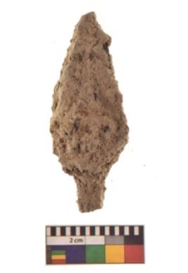 | Description / विवरण | An iron arrow head with triangular shaped body with pointed top and curved pointed edges on either side at the flat end at the bottom |