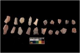 | Description / विवरण | Specimen of flakes Chips with prominent flaking marks. It made up of a short flakes with sides trimmed. |