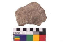 | Description / विवरण | Specimen of an uneven shaped grinding stone with smooth surface. It is brownish in colour and has flat base. |