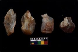 | Description / विवरण | There are n 4 of utilized worked cores and show dominant scar pattern. Three are tapering at one end. |