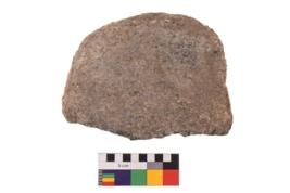 | Description / विवरण | Specimen of an uneven shaped grinding stone with smooth surface. It is brownish in colour and has flat base. |