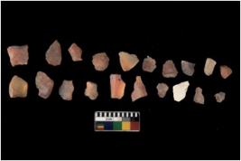 | Description / विवरण | Specimen of flakes Chips with prominent flaking marks. It made up of a short flakes with sides trimmed. |