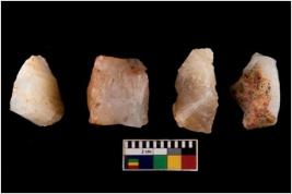 | Description / विवरण | Specimen of a cores with several broad fluted marks. Some of them are tapering at one end. |