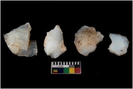 | Description / विवरण | There are n 4 of utilized worked cores. They have sharp edges and multidirectional scar pattern. Two are tapering at one end. |